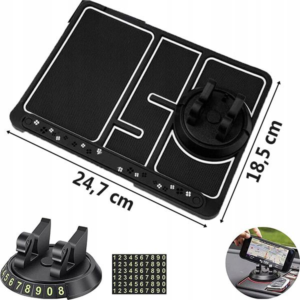 📏 Univerzalna kompatibilnost: Sa dimenzijama 24,7 x 18,5 cm, ova prostirka se savršeno uklapa na svaku komandnu tablu automobila, osiguravajući čvrsto i sigurno postavljanje.