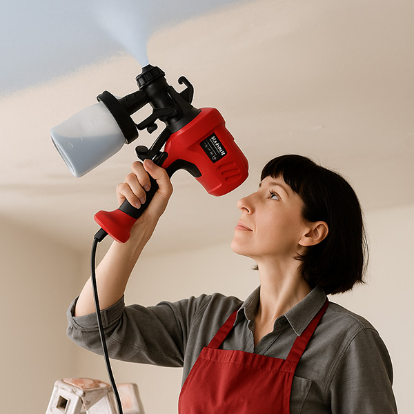 Specijalna mlaznica stvara finu maglu boje koja se ravnomerno taloži, bez pruga ili mrlja. Alat stvara osećaj da se svaka oblast farba sama „kako treba“, bez obzira na materijal, iskustvo korisnika ili smer kretanja.